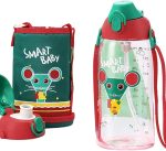 Büyük Boy 700ml Kılıflı Askılı Pipetli/pipetsiz Iki Ayrı Kapaklı Tritan Çocuk Matarası (Smart Baby (Kırmızı-Yeşil))