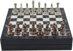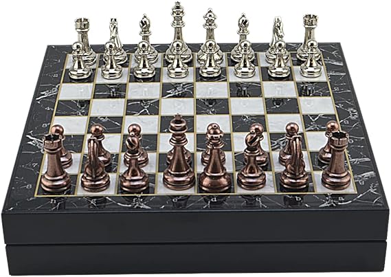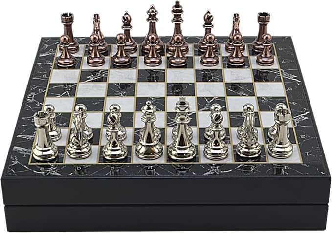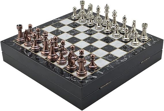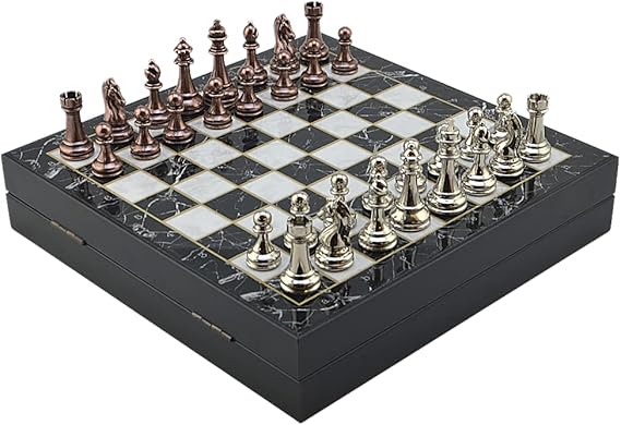 Büyük Boy Metal Klasik Satranç Tk. Antik ve Mermer Desenli Sandıklı MDF Tahtası(36X36 cm.)