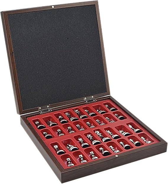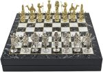 GiftHome Büyük Boy Metal Mısır Satranç Tk. Parlak ve Mermer Desenli Sandıklı MDF Tahtası(36X36X6 cm.)