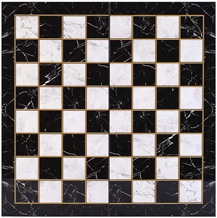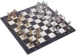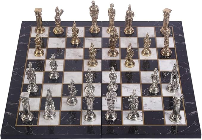 Büyük Boy Metal Pegasus Atları Satranç Takımı Parlak ve Katlanır Mermer Desenli MDF Ahşap Satranç Tahta (43×43 cm.)