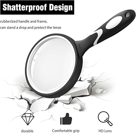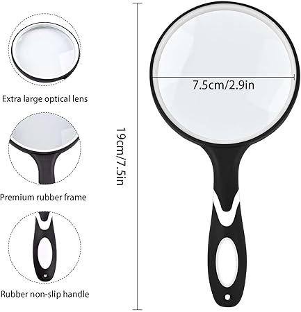 Hafif ve kırılmaz: Cam merceğin mükemmel kalmasını sağlayan kauçuk benzeri çerçeveden yapılmıştır. Sadece 5,1 oz ağırlığında el tutulan büyüteç. Artık kol yorgunluğundan şikayet etmeyeceksiniz.