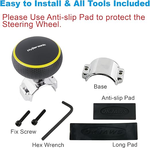 Zahmetsiz sürüş: Araç güç kolu aracınızı yönlendirmenizi çok daha kolay hale getirir. Omuz veya kol hastalıkları olan sürücüler için sizi rahatlatabilir. Uzun mesafeli sürücüler için yorgunluğunuzu hafifletebilir. Hypersonic araç intihar düğmesi, sürücüler için iyi bir direksiyon aksesuarıdır.