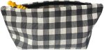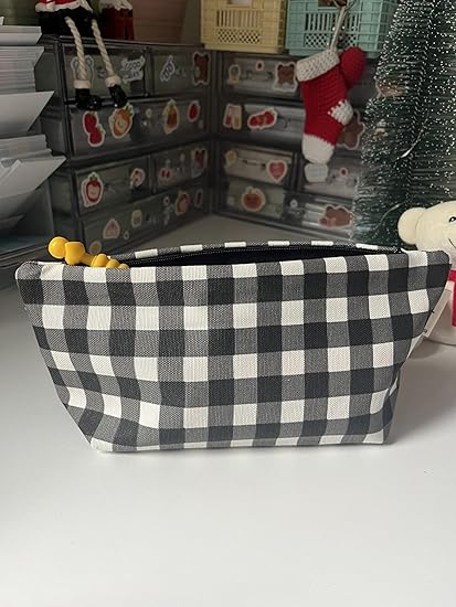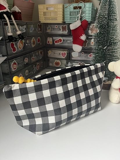 Büyük Pötikareli Yıkanabilir Fermuarlı Tek Gözlü Bez Kalemlik Kalem Kutusu Cüzdan Makyaj Çantası Bez Kalem Kesesi (Siyah)