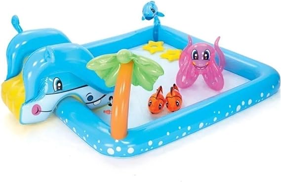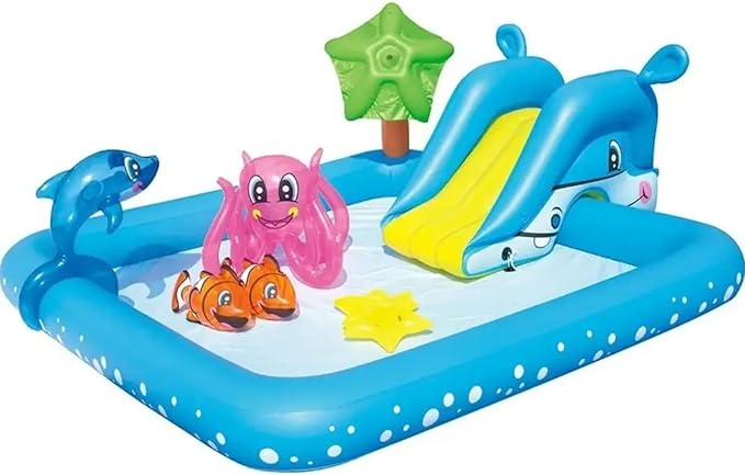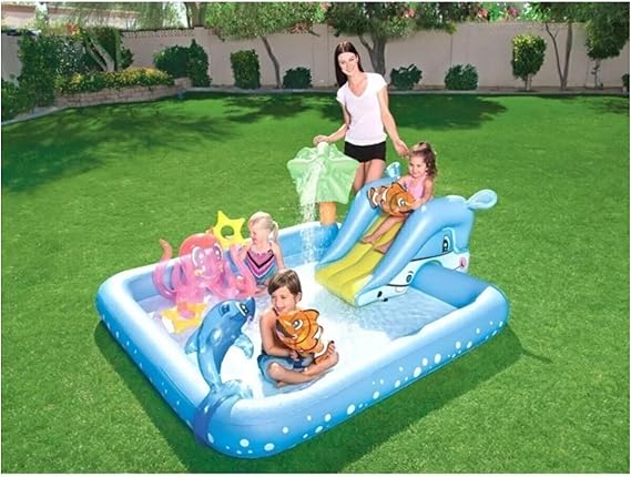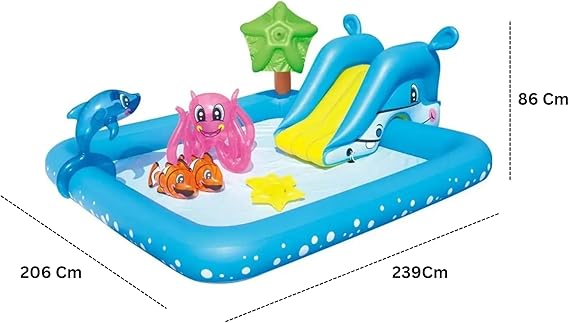 Büyük Şişme Havuz – Fıskiyeli Su Fışkırtma Özelliği, Kaydıraklı ve Sevimli Hayvanlar ile Eğlenceli Oyun Alanı, 2.39 Metre Genişliğinde, Bebekler ve Çocuklar İçin Kaydıraklı Şişme Havuz