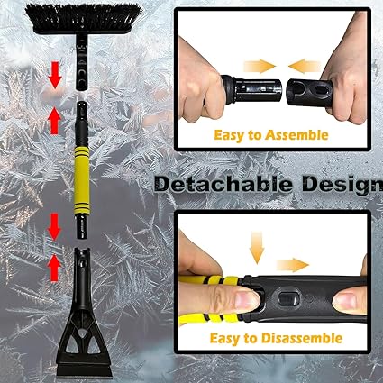 Buz Kazıyıcı, Kar Fırçası 3’ü 1 Arada Buz Kazıyıcı, Çıkarılabilir, Köpük Saplı ve Kar Fırçalı Teleskopik Buz Kazıyıcı, Araba, SUV ve Kamyon için Uygun, Sarı