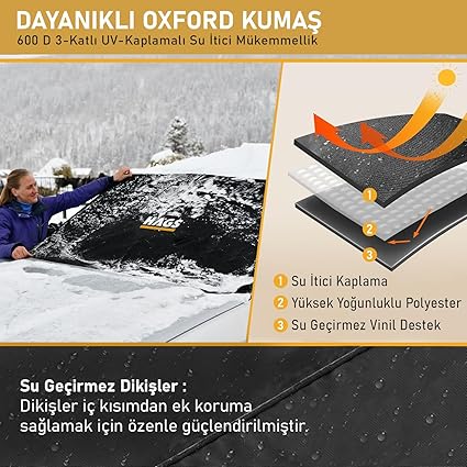 ✅ KULLANIŞLI VE KOMPAKT : Araba Kar Örtüsü silecek lastiklerini de kapsar ve kompakt kesesinde kolayca saklanabilmesi için katlanabilir. ARAÇ ÖN CAM KORUMA KALKANI : Araba ön cam koruma kılıfımız 600D Oxford kumaştan üretilmiştir. Ayrıca buz, kar, don ve sulu karın birikmesini önlerken, yumuşak iç astarı ön camınızı çizilmelere karşı korur.