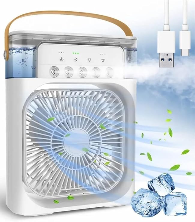 BWFN10 Beyaz Buzlu Vantilatör Mini Fan 5 Spreyli Su Püskürtmeli 600 ML Buhar Makinesi Nemlendirici Mini Klima
