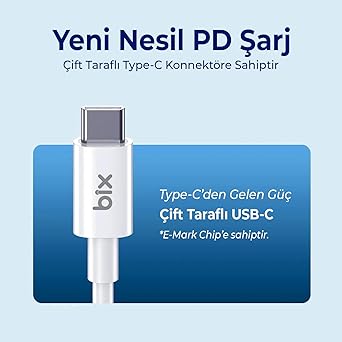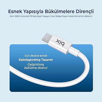 100W Gücünde İnanılmaz Şarj! ✔ Bix BX08CC 100W 5Gbps E-Mark Çipli Type-C to Type-C PD Şarj ve Data Kablosu, Power Delivery (PD) 3.0 ve PPS’yi destekler. Akıllı telefonlar, tabletler ve USB-C bağlantı noktasına sahip dizüstü bilgisayarlar için şarj gücü 100W’a kadar ulaşabilir.