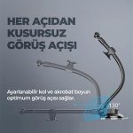 Üst Düzey Konfor Esnek akrobat kolu sayesinde istenilen görüş açısı kolaylıkla ayarlanır. Ön cama veya araç gövdesine yapışarak konforlu sürüş deneyimi yaşatır.