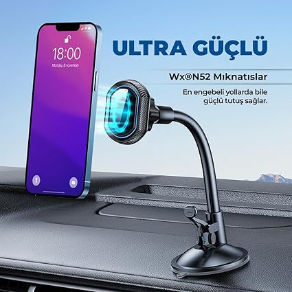 by Deji Güçlü Mıknatıslı Vantuzlu Araç İçi Telefon Tutucu – Vakumlu Akrobat Araba Telefon Tutacağı