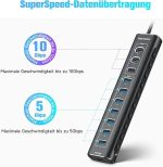 11’i 1 arada Powered USB C Hub – Bir USB C/A portunu hemen iki USB-C 3.1 Gen2 bağlantı noktası, 1 USB-A 3.1 Gen2 bağlantı noktası, 7 USB-A 3.0 bağlantı noktası ve 1 20W PD şarj bağlantısına dönüştürün. Tak ve çalıştır desteği, sürücü gerekmez