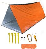 C Acil Durum Çadırı, 2 Kişilik Tüp Çadırı, Paraşüt Kordonlu, Kazıklı, Düdük Ultra Hafif Hayatta Kalma Çadırı Acil Durum Barınağı Kamp, Doğa Yürüyüşü için Hayatta Kalma Ekipmanı Alanı Battaniyesi olarak kullanın (Turuncu)