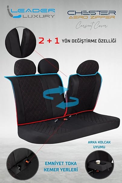 C-HR ile Uyumlu Lüx Yarı Deri Oto Koltuk Kılıfı Ön Arka Takım Chester SİYAH KIRMIZI