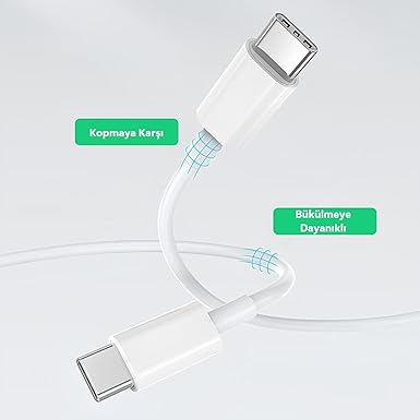 “C to Type C Hızlı Şarj ve Data Transfer Özellikli Şarj Kablosu, 60 W Çift Taraflı USB C Kablo, Yüksek Kaliteli Malzeme 1 Metre/Beyaz” için yorum yapan ilk kişi siz olun
