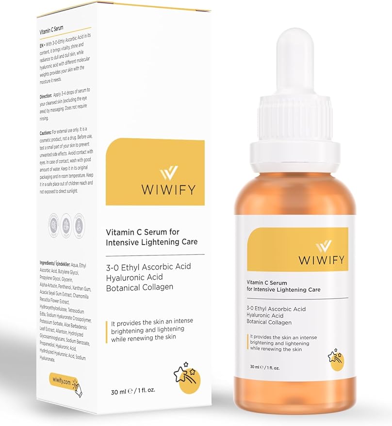WIWIFY C Vitamini Serum C Vitamini ve 3-O-Etil Askorbik asit ile cildi yenilerken cilde yoğun bir parlaklık ve aydınlanma sağlar.