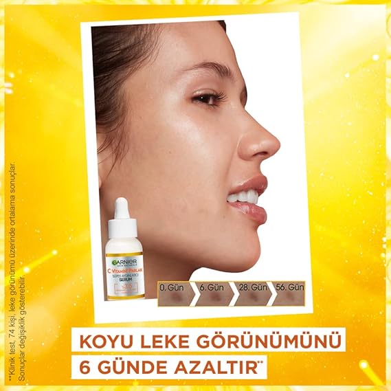 KANITLANMIŞ ETKİNLİK: Parlak ve aydınlık bir cilt . Koyu leke görünümü 6 günde azaltır.