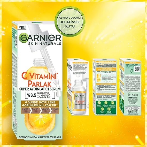 Garnier’nin [%3.5] Niasinamid+C Vitamini*+Salisilik asit ile yüksek konsantrasyona sahip ilk serumu.