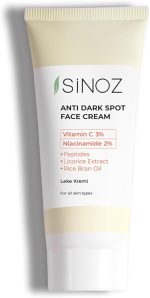 *Tüketici Kalite Ödüllü Sinoz Leke Kremi; %3 C Vitamini içeren yeni formülü ile cilt tonunu eşitlemeye ve tek ton görünüm sağlamaya yardımcı olur. Sinoz Leke Kremi, koyu cilt lekelerinin oluşmasına karşı kusursuz bakımı hedeflerken ışıltılı bir görünüm sunar