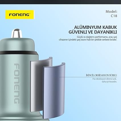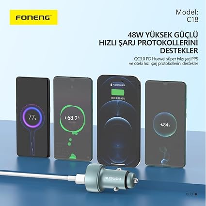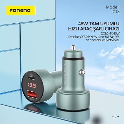 C18 Çift Bağlantı Noktalı 48W Araç Şarjı, iPhone ve Android telefon uyumlu,