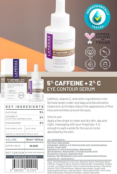 İçerdiği Kafein, C vitamini ve Hyaluronik Asit ile göz çevrenizdeki koyu halkaları ve kırışıklıkların görünümünü azaltmaya yardımcı olur.