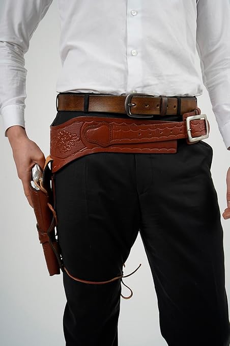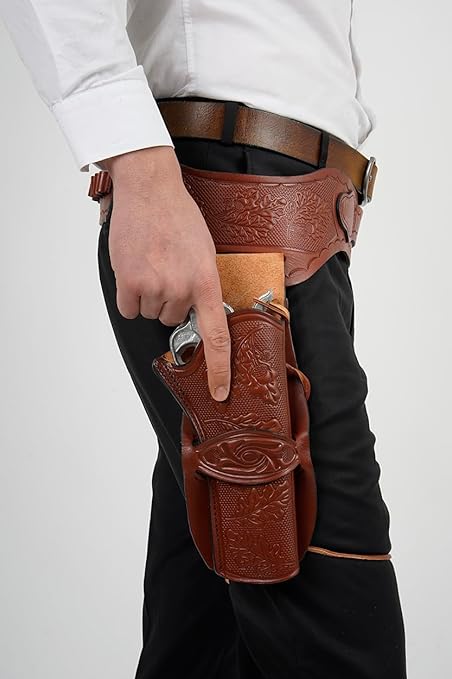 CAKA Batı Kovboy Tabanca Kılıfı, Deri, Özelleştirilmiş Kemer, 35-45 Kalibre Uyumlu, 20 Mermi Kapasiteli