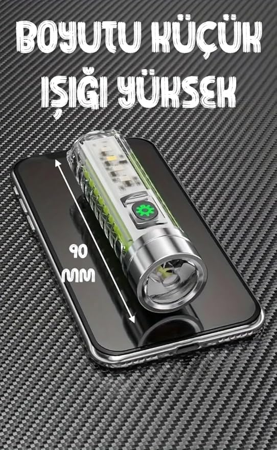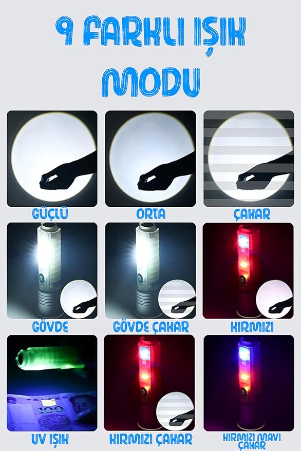 Çakarlı Ledli Şarjlı 9 UV Işıklı SOS Acil Durum Anahtarlık Mini El Feneri 130 lümen 3W 47740