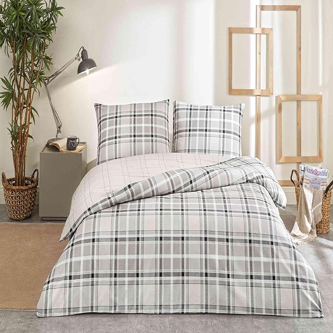 Caleb Renkli Klişe Pamuk Nevresim Takımı, Gri, Çift Kişilik