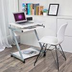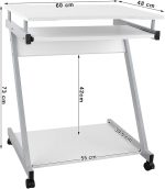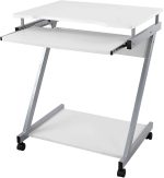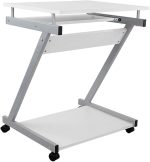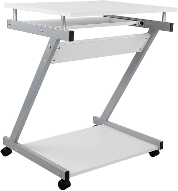 Çalışma Masası, 4 Tekerlekli Bilgisayar Masası, Pc Masası, Pürüzsüz Klavye Uzatma, Kolay Montaj, Yerden Tasarruf Sağlayan Z-Şekilli Pc Masası, Beyaz, Lcd811W, 60 X 48 X 73 Cm