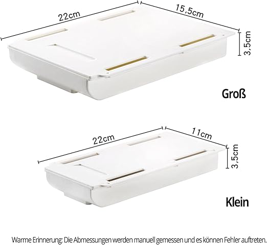 【Çalışma masası altında çekmece 2 adet】Ambalaj listesi farklı boyutlarda iki çekmece içerir, yani 22 x 15, 5 x 3,5 cm ve 22 x 11 x 3,5 cm. Farklı boyutlar farklı eşyaları saklamak için uygundur ve günlük ayarlama için pratiktir. kullanabilirsiniz. Çok sayıda eşyayı saklamak için her yere takabilirsiniz. Kırtasiye malzemeleri, kozmetik, uzaktan kumanda, cep telefonu vb. saklamak için uygundur.