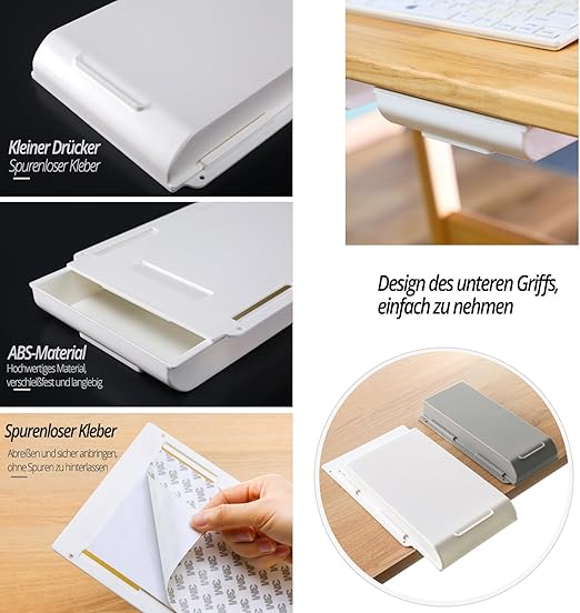 Çalışma masası çekmecesi, tezgah altı, kendinden yapışkanlı, düzenleyici, gizli alt masa, ofis, masa, makyaj masası ev için (beyaz, 2’li)