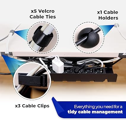 İdeal komple set – Sadece bir kablo düzenleyici çalışma masası değil, 1 büyük kablo panosu, 2 sabitleme vidası, 2 kablo tutucu, 3 kablo klipsi ve 5 kablo bağı içeren komple set kablo düzenleyici çözümü