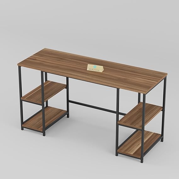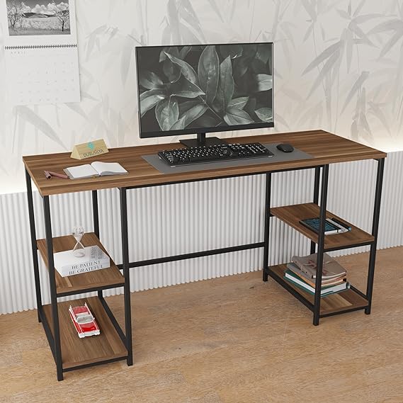 Çalışma Masası, Kitaplıklı, 140×50 cm, Ceviz-Siyah Metal, Ev ve Ofis için Bilgisayar Masası
