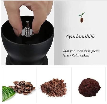 ÜRÜN İÇERİĞİ: 2 ADET CAM SAKLAMA KABI KAPAKLI ( ÖĞÜTÜLEN KAHVENİN SAKLANDIĞI ALT HAZNE) 1 ADET SERAMİK ÖĞÜTÜCÜ ( ÜST HAZNE) 1 ADET ÇEVİRME KOLU TAMAMI YÜKSEKLİĞİ 19 cm Ürün 2 parçası da camdır. Üst ve alt parçaları siyah silikondur.
