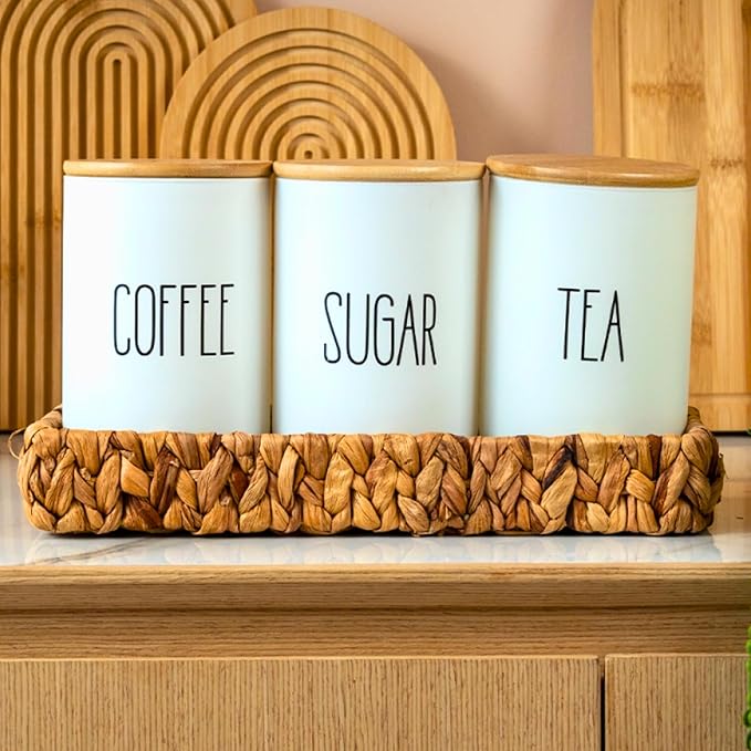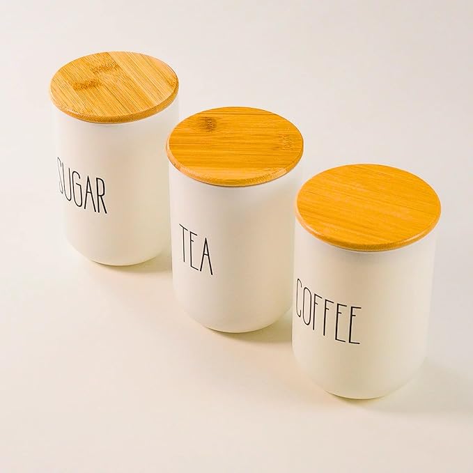 Cam Kahve, Şeker Ve Çay Saklama Kavanoz Seti Hava Geçirmez (3’lü Set) Baharatlık, Beyaz