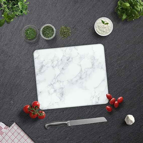Cam Kesme Tahtası Panosu 25 X 35 Kırılmaya Isıya Çizilmeye Dayanıklı Antibakteriyel Doğal Kesme Tablası Mermer Design