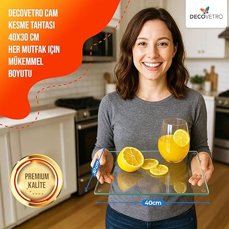 Cam Kesme Tahtası Ve Sunum Tablası Natural Saydam 30 X 40 Cm