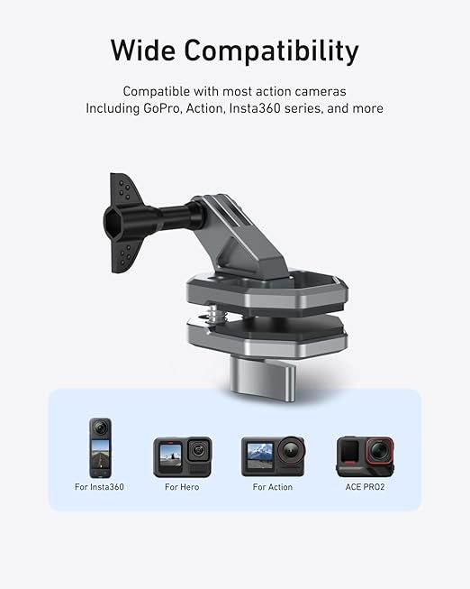 【 Yaygın olarak uyumlu】Hemen hemen tüm spor kameralarla uyumludur, Go pro 13/12/11/10/9/8 ile DJI Osmo 360/DJI Action 4 3 2 için Insta 360 X5 X4 X3 X2 vb. için uyumludur.