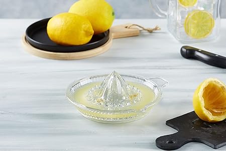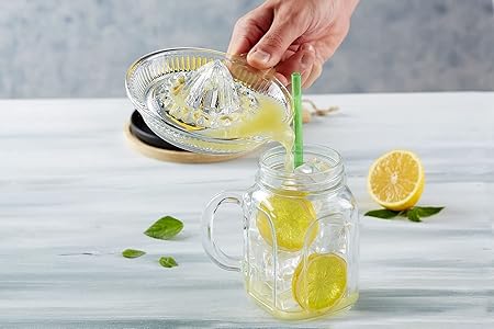 Cam Limon Sıkacağı | Portakal ve Narenciye Sıkacağı | Manuel, Şeffaf Cam, Kolay Temizlenir | Kulplu Taze Meyve Suyu Sıkacağı