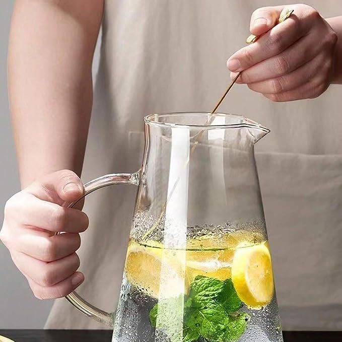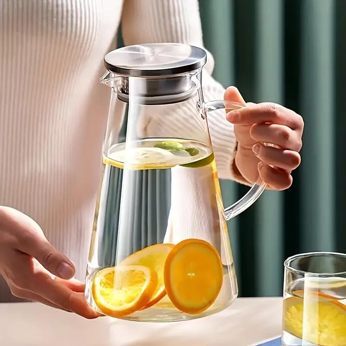 Cam Sürahi | Süzgeçli Paslanmaz Çelik Kapaklı, Isıya Dayanıklı Soğuk & Sıcak İçecek Servis Sürahisi (1800 ml) | Detoks İçecek Sürahisi Soğuk ve Sıcak İçecekler İçin