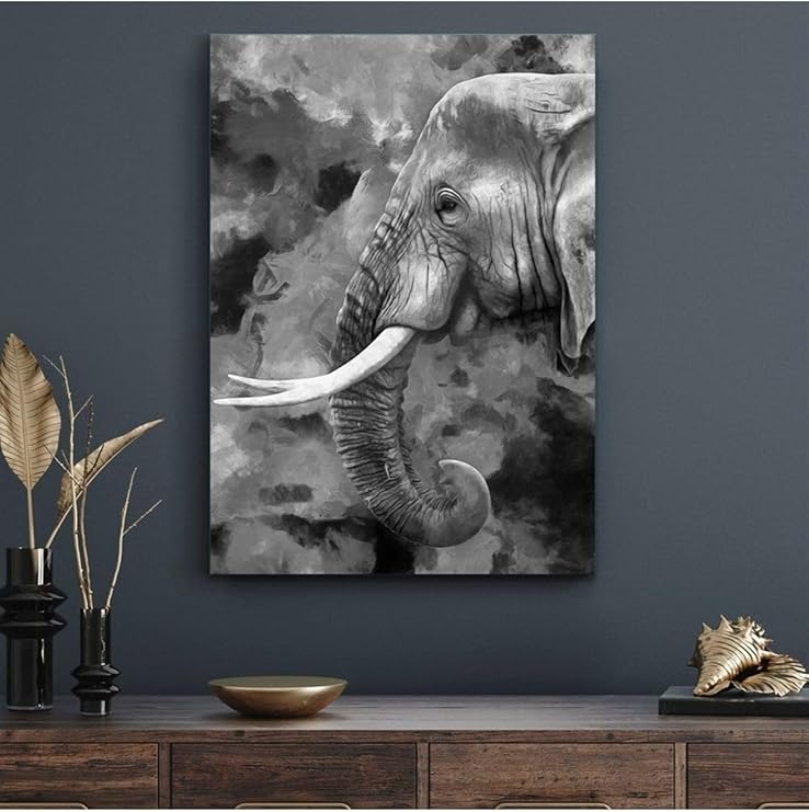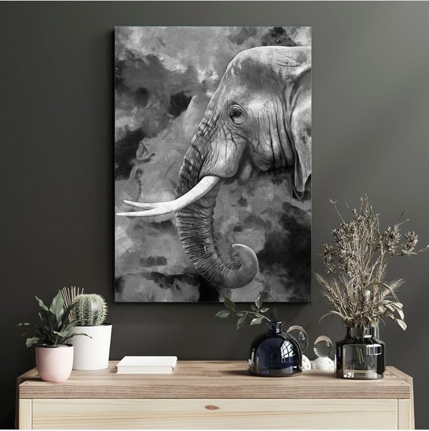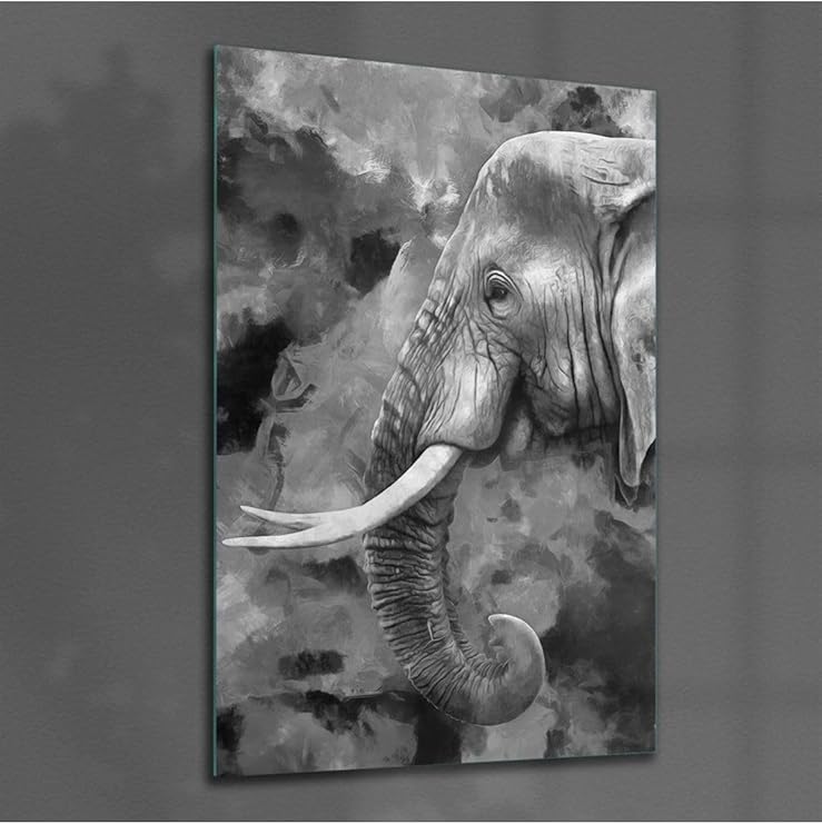 Cam Tablo Siyah Beyaz Fil