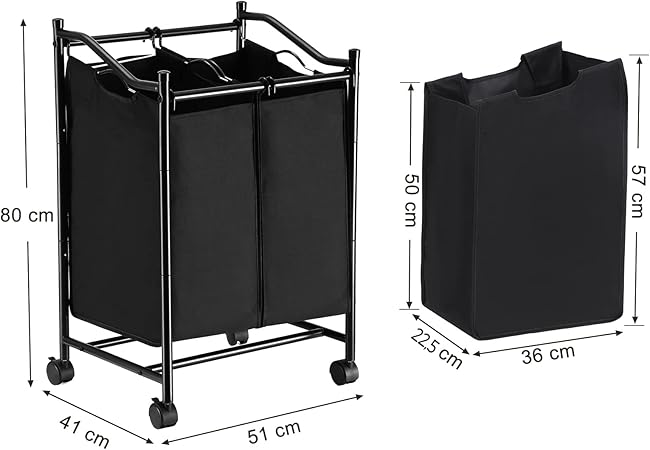 “çamaşır ayırıcı, tekerlekli ve 2 bölmeli, çamaşır sepeti, çıkarılabilir çantalı çamaşır arabası, toplam kapasite 90 l, siyah, LSF002BK” için yorum yapan ilk kişi siz olun Yanıtı iptal et