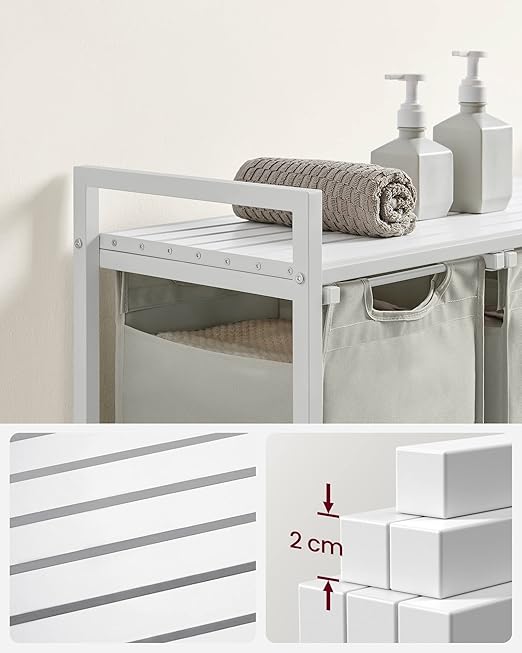 Çamaşır Sepeti 3 Bölmeli, Raflı Çamaşır Torbası, Çamaşır Kutusu, Oxford Kumaştan Uzatılabilir Çamaşır Torbası, Metal Çerçeve, 3 x 38 L, 92,5 x 33 x 72 cm, Beyaz BLH301W01
