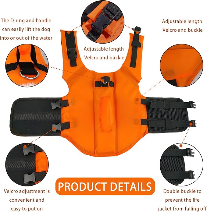 4. 【Çift koruma】Cırt cırtlı ve tokalı çift koruma, böylece köpek balığı yüzgeci olan köpek yüzme yeleği düşmez.