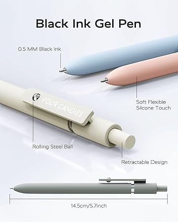 Moda ve pratik tasarım: İnce, şık varillere sahip 6 adet jel kalem, kaleme modern, profesyonel bir görünüm kazandırır, geri çekilebilir tasarım, kapağı dikkatlice bastırın, kalem ucu otomatik olarak geri çekilir. Bu kalem okul için iyi bir alettir ve iş ve günlük kullanım için çok güzel bir kalemdir.