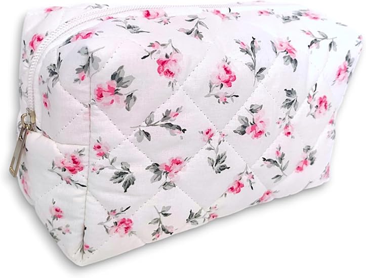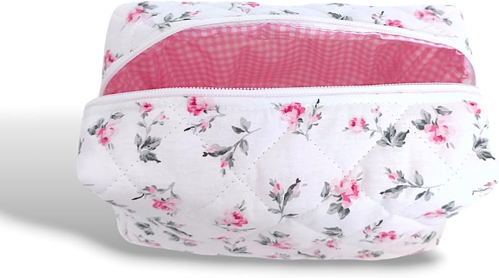 Çantası | Makeup Bag | Kapitone Bakım Seyahat Kozmetik Çantası (Beyaz-Pembe)