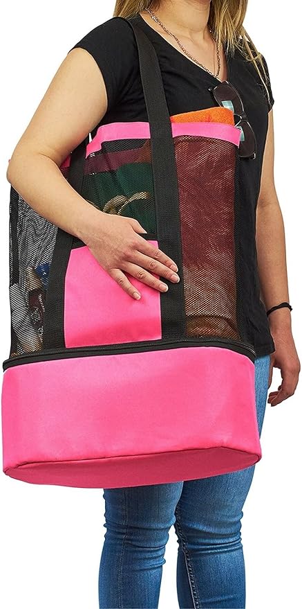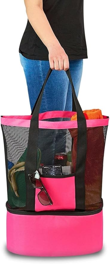 2 bölmeden oluşan askılı plaj kamp piknik çantası, alt kısmı yalıtımlı olup termal özelliklidir.