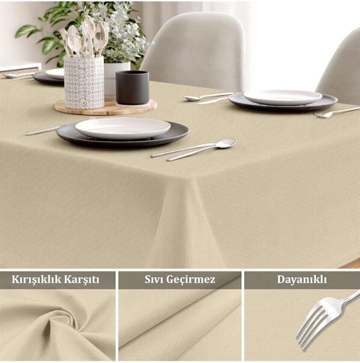 Canvas Açık Bej Sıvı Geçirmez Leke Tutmaz Masa Örtüsü AÇIK BEJ 160 x 300