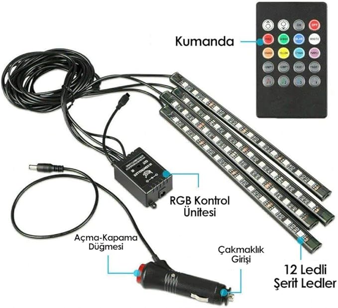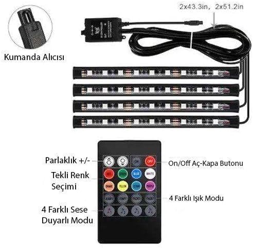 car accesories Araç İçi Ayak Altı Led Kumandalı Sese Duyarlı 12’li – RGB