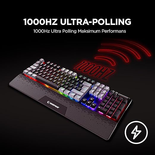 Carbon Pro 2.4ghz+BT5.0+Type-C Bağlantı Red Switch Rgb Bilek Destekli Mekanik Gaming Oyuncu Klavye Q Tr Hot Swap