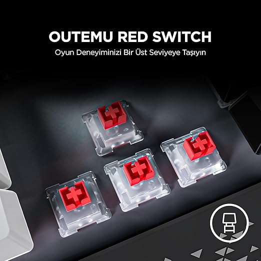 Outemu red switchler ile performansınızı en üst seviyeye çıkarın. Outemu red switchlere sahip butonları ile carbon pro, Oyunlarınızda maksimum performansı sağlamak üzere özenle tasarlandı. Red swicht ile performansınızı farklı hissedin.